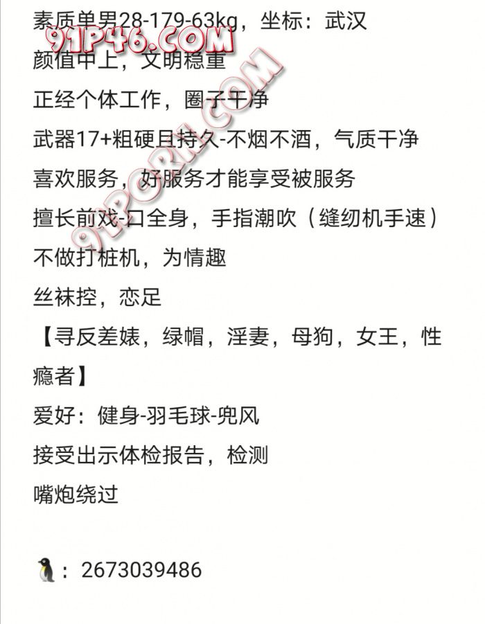 武汉高素质单男,会按摩,会调情,有车,有办公室提供剧情式服务!