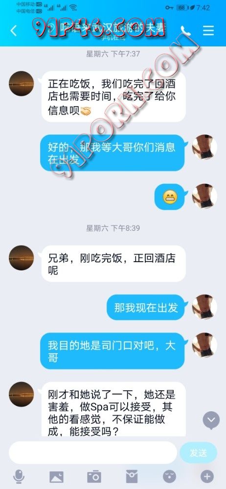 这对夫妻是来武汉旅游的,在网上看到了我的联系方式加了聊了一天以后,在一个雨夜的晚上,大哥邀请我去帮夫人做精油spa,夫人心理也有准备,确认好事项之后,由于夫人第一次做spa多人活动,让其带了一个眼罩缓解压力,这样不会害羞,大哥夫妻在司门口吃完饭通知我出发,带上装备就出发了,到了以后夫人已经带好眼罩躺在床上,夫人也不知道我的长相,简单的聊了一下天,我就去洗漱,洗好了先帮夫人按摩头部缓解压力,按太阳穴以及头部,夫人说按的很舒服快睡着了,然后按手臂,再让夫人翻过来按背部,背部要上精油,让夫人脱光了,这时候夫人有点害羞,灯光打暗就没有拍照了,发现夫人肩颈有硬疙瘩,可能是长期坐办公室比较劳损,一边聊天一边问力道合适不,然后到背部,臀部,腿部,脚部,整个过程60分钟,然后按完脚以后开始调情,用舌头开始舔夫人的耳垂,一舔就发现夫人抖动了一下,到脖子,背部,夫人已经受不了开始呻吟,慢慢哈气到臀部,发现夫人已经湿透了,全部是水,果然大家都说少妇是水做的,先舔臀部,腿部,脚,在果断奔向下面阴唇,夫人开始撅起屁股迎合我的舌头,舔了大概十分钟夫人已经到了第一次高潮,夫人说受不了,大哥过来脱下裤子开始舔大哥的下面,一个手摸我的,跟大哥说他的好大,我的下面有16左右,比较粗,有点弯弯的,容易到G点,大哥让我脱了裤子带套套开始干夫人,多人活动开始,夫人高潮了四回,我射了两次,大哥一次,圆满结束