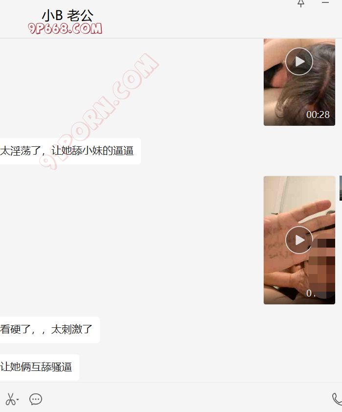 在这个过程中,我一直在录像,拍照,发给小B的老公,他刺激的不行了,发来了自己lu的视频。